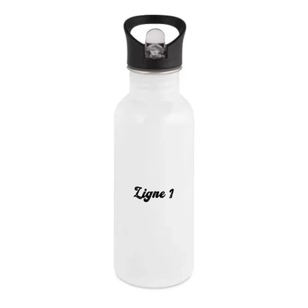 Cette gourde personnalisée en acier inoxydable avec paille intégré et bec verseur pliable, compatible avec la norme REACH.