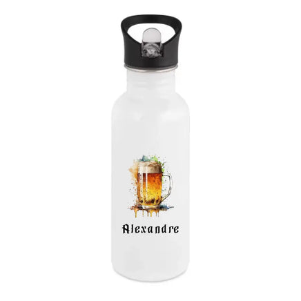 Cette gourde personnalisée en acier inoxydable avec paille intégré et bec verseur pliable, compatible avec la norme REACH.