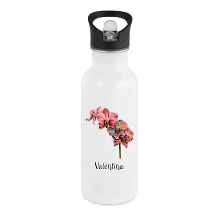 Cette gourde personnalisée en acier inoxydable avec paille intégré et bec verseur pliable, compatible avec la norme REACH.