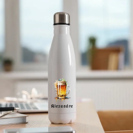 Cette bouteille isotherme personnalisée est en inox, disponible en 500 ou 750ml, idéale pour le sport ou les loisirs.
