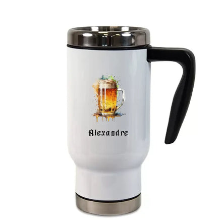 Ce mug thermos personnalisé est en inox Ø 85 mm.